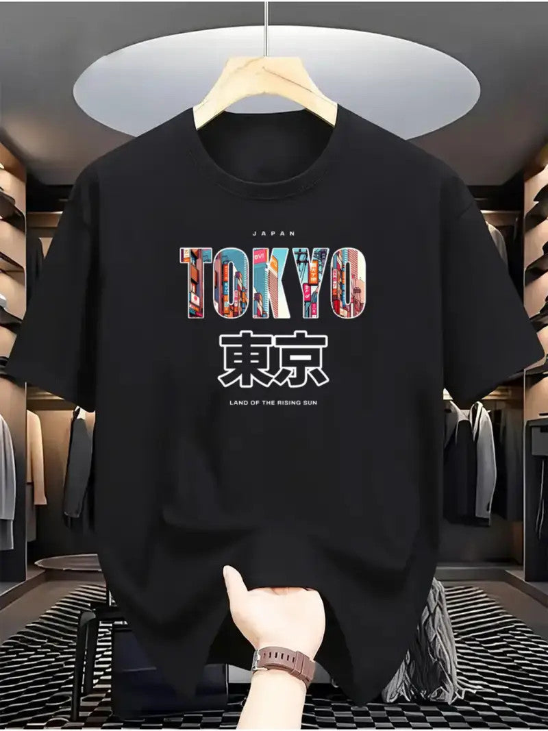 Drop Shoulder Black T-Shirt - Tokyo Design