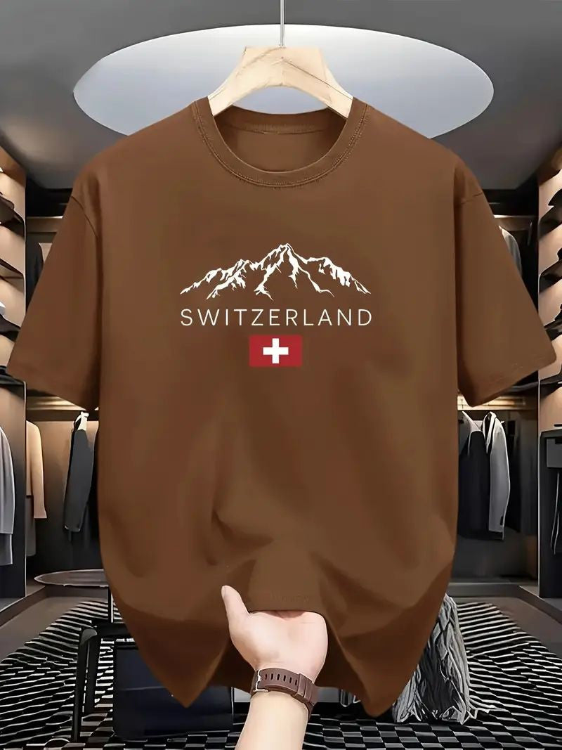 Drop Shoulder Coffee T-Shirt - Switzerland Design